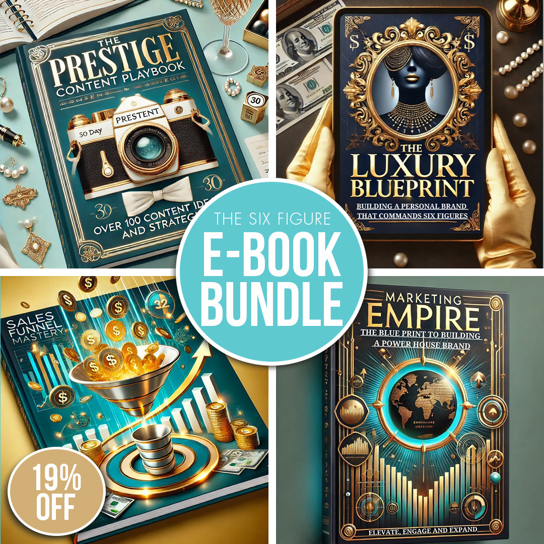 When you purchase all four e-books as a bundle, you’re not just saving money you’re stepping into the full transformation of your brand, your mindset, and your marketing. Each e-book covers a specific area of growth, but together, they become the ultimate strategy suite for building a luxury brand that sells, scales, and stays visible.